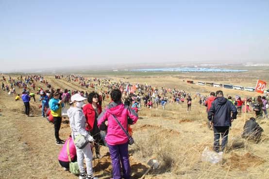 來自全國15個(gè)省區(qū)的3000多名代表共同植樹,打造中國沙棘第一村