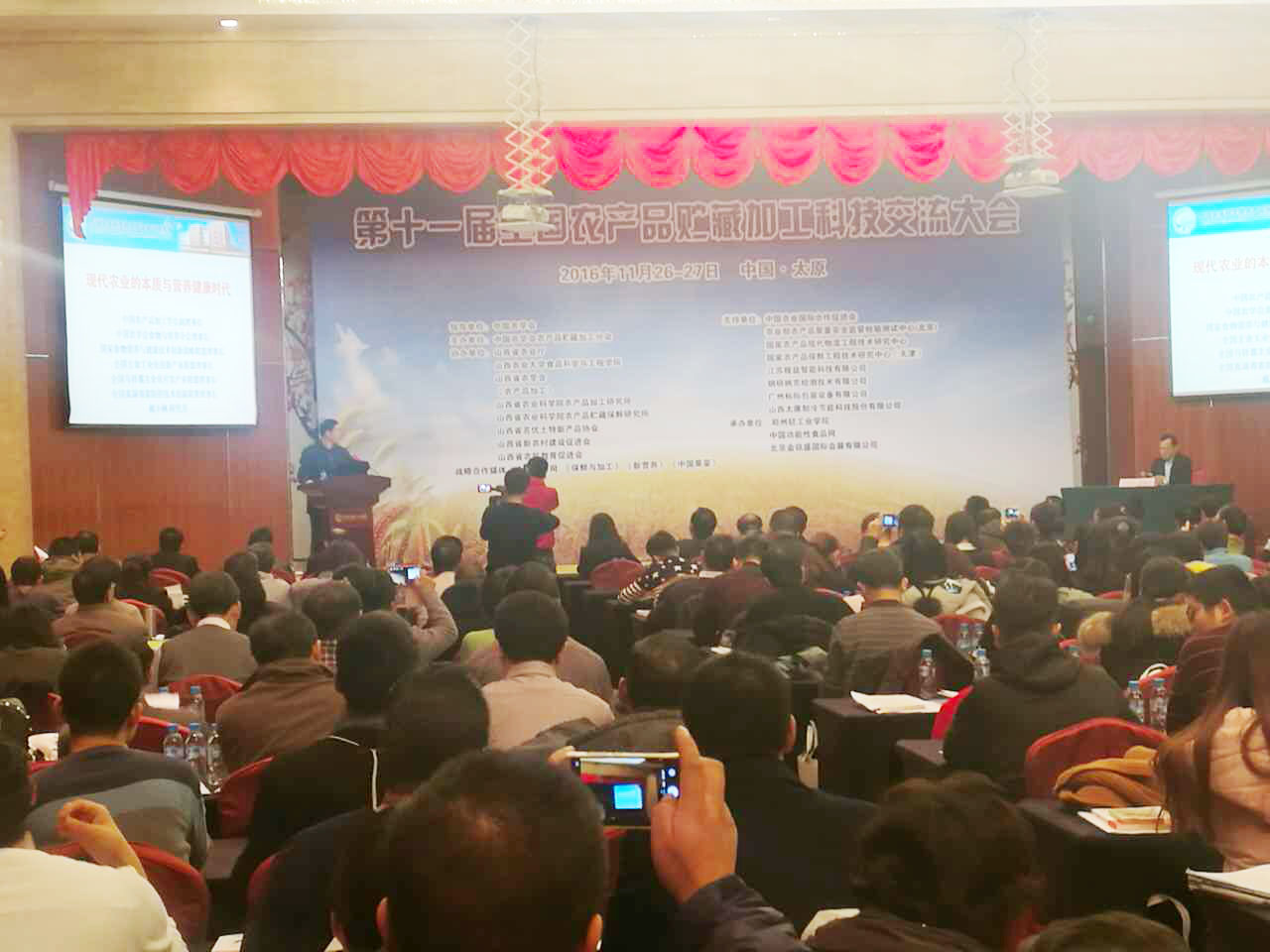 20161125-27日,由中國(guó)農(nóng)學(xué)會(huì)農(nóng)產(chǎn)品儲(chǔ)藏加工分會(huì)主辦,山西省農(nóng)業(yè)廳等單位支持,中央電視臺(tái)、中國(guó)食品報(bào)、食品商務(wù)網(wǎng)等支持的第十一屆全國(guó)農(nóng)產(chǎn)品儲(chǔ)藏加工科技交流大會(huì)在山西太原花園國(guó)際大酒店隆重召開(kāi)。