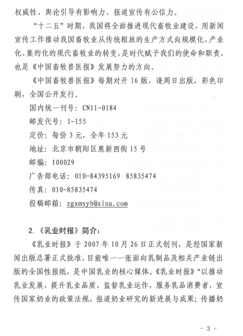 關(guān)于建議會員單位訂購《中國畜牧獸醫(yī)報(bào)》、《乳產(chǎn)業(yè)時報(bào)》的通知