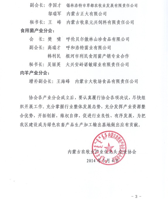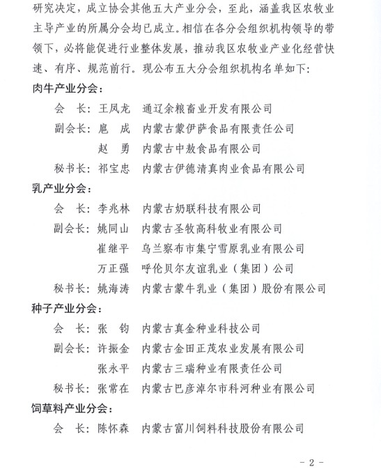 關于成立內蒙古農牧業(yè)產業(yè)化龍頭企業(yè)協會各大產業(yè)分會的通知