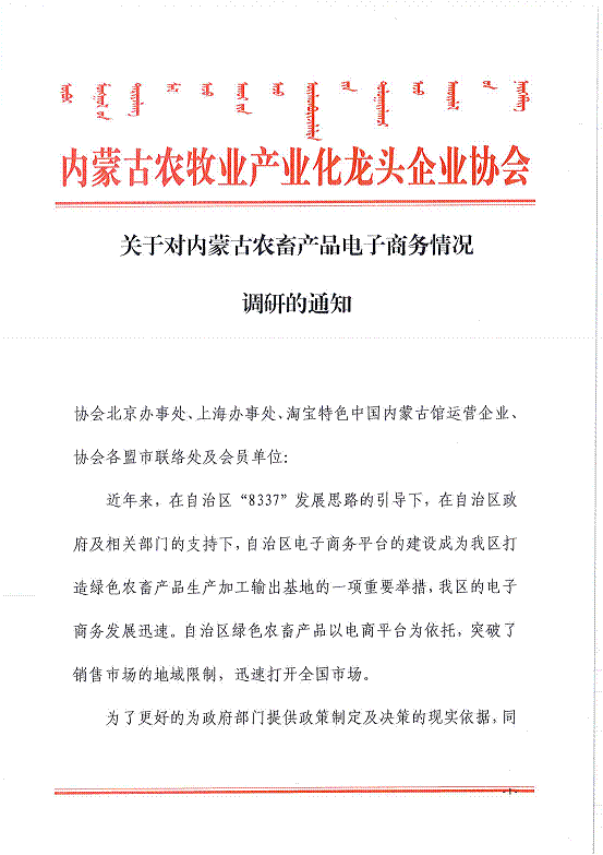 關(guān)于對(duì)內(nèi)蒙古農(nóng)畜產(chǎn)品電子商務(wù)情況調(diào)研的通知