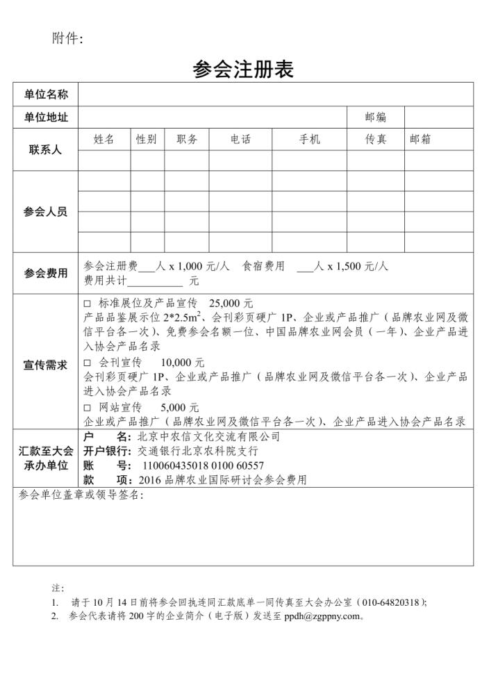 附件 參會注冊表