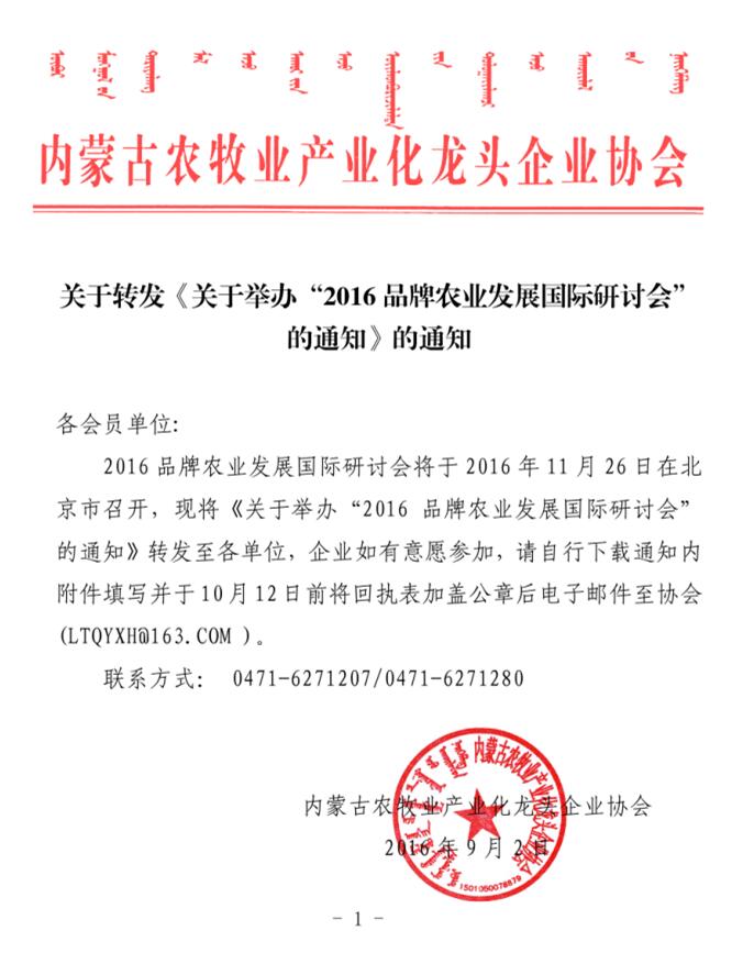 關于轉發(fā)《關于舉辦“2016品牌農(nóng)業(yè)發(fā)展國際研討會”的通知》的通知